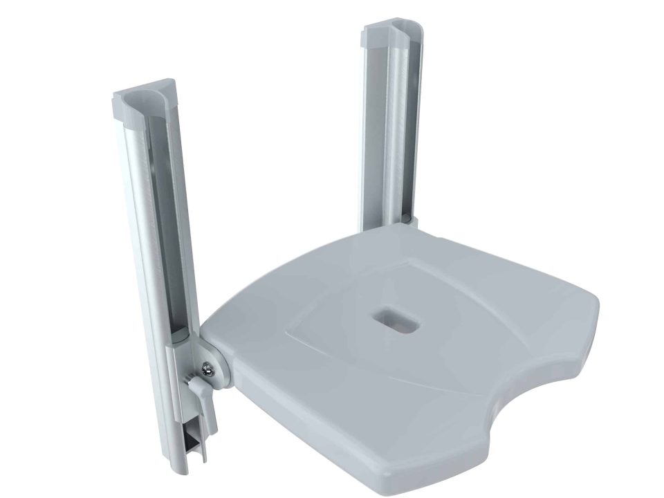 Door een gat in het midden van de zitting kan water gemakkelijk weglopen, waardoor het hygiënischer en gemakkelijk schoon te maken. Wanneer het zitje niet in gebruik is, kan het worden ingeklapt tegen de muur om ruimte vrij te maken en obstakels in de kamer te verminderen. De in hoogte verstelbare zitting kan zijwaarts worden versteld. Als extra ondersteuning zijn de Bano zijsteunen beschikbaar.